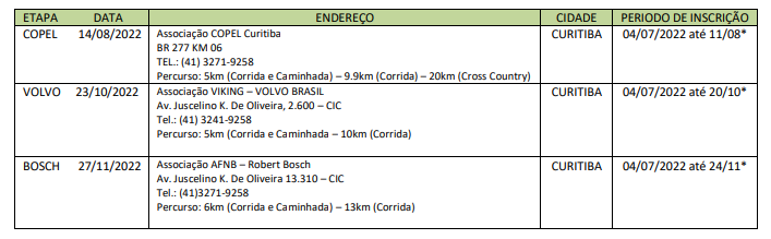 *Etapa Copel – 14 de agosto – INSCRIÇÕES ABERTAS